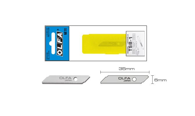 OLFA ostrza TSB-1Ostrze do cięcia na grubość jednej warstwy, przeznaczone do noża TS-1, ponieważ zastosowano stal narzędziową o odpowiednio dobranych parametrach i precyzyjnemu ostrzeniu uzyskano ostrze tnące łatwo, dokładnie oraz wyjątkowo trwałe. Grubość ostrza: 0,30mm, długość ostrza: 35mm, szerokość ostrza: 6mm.