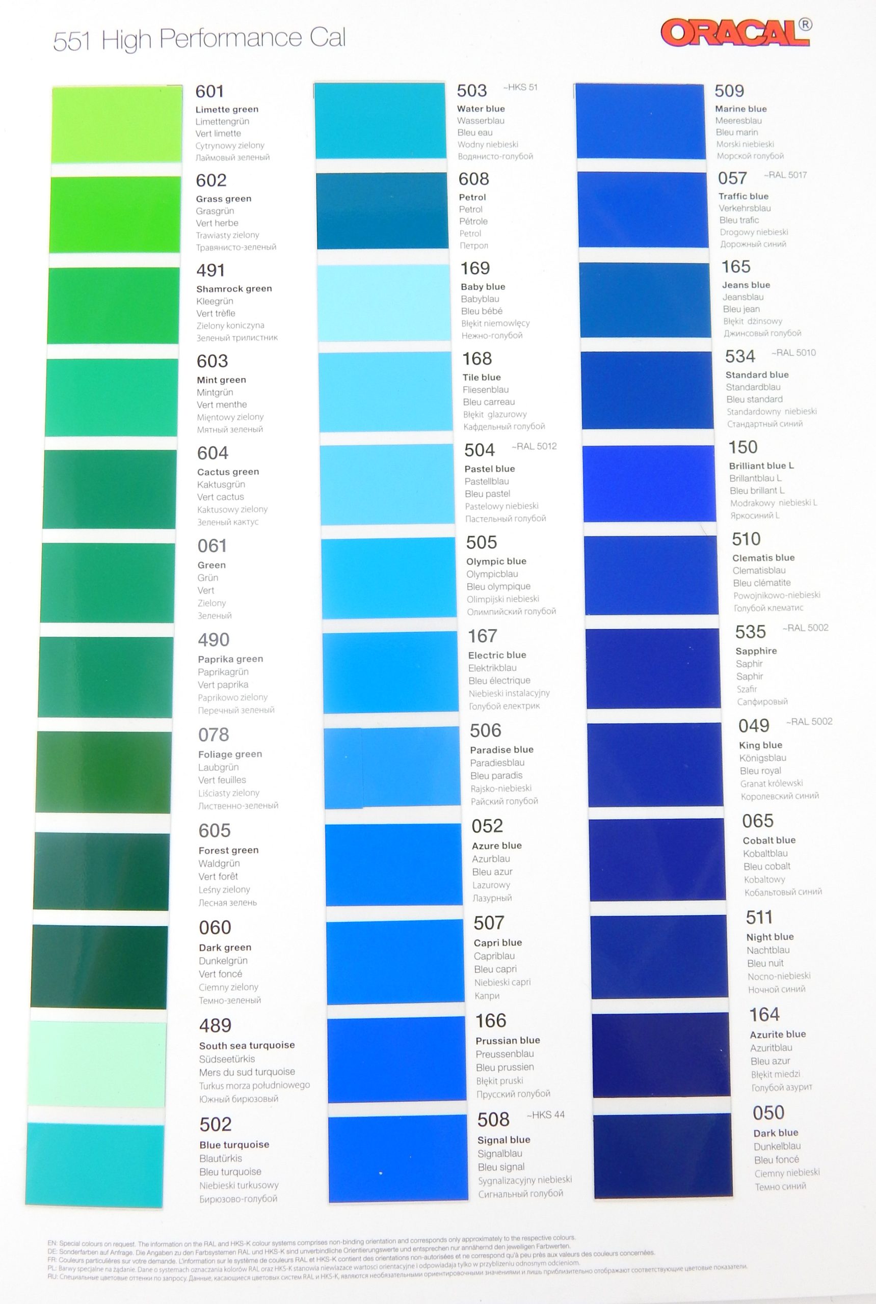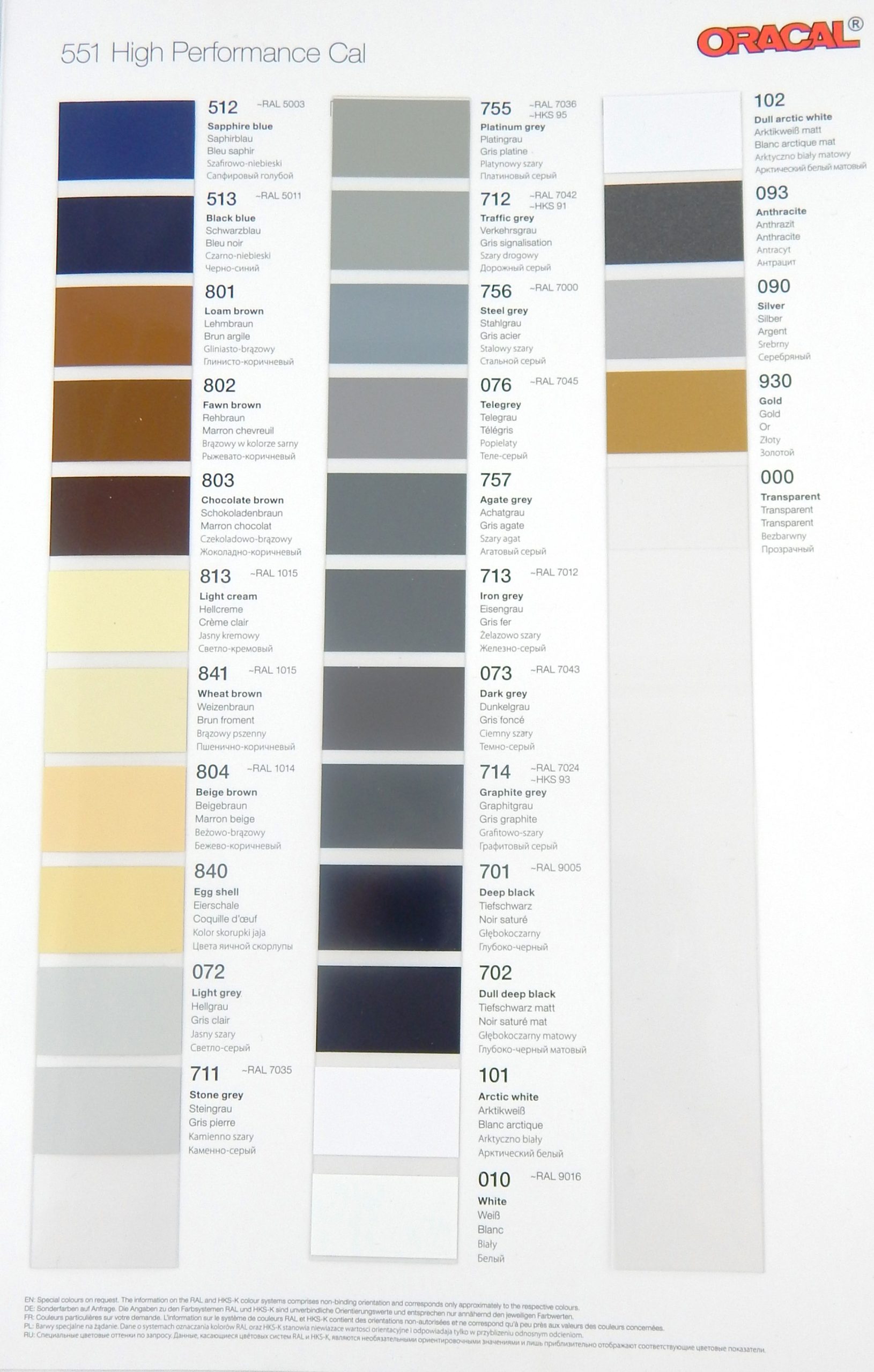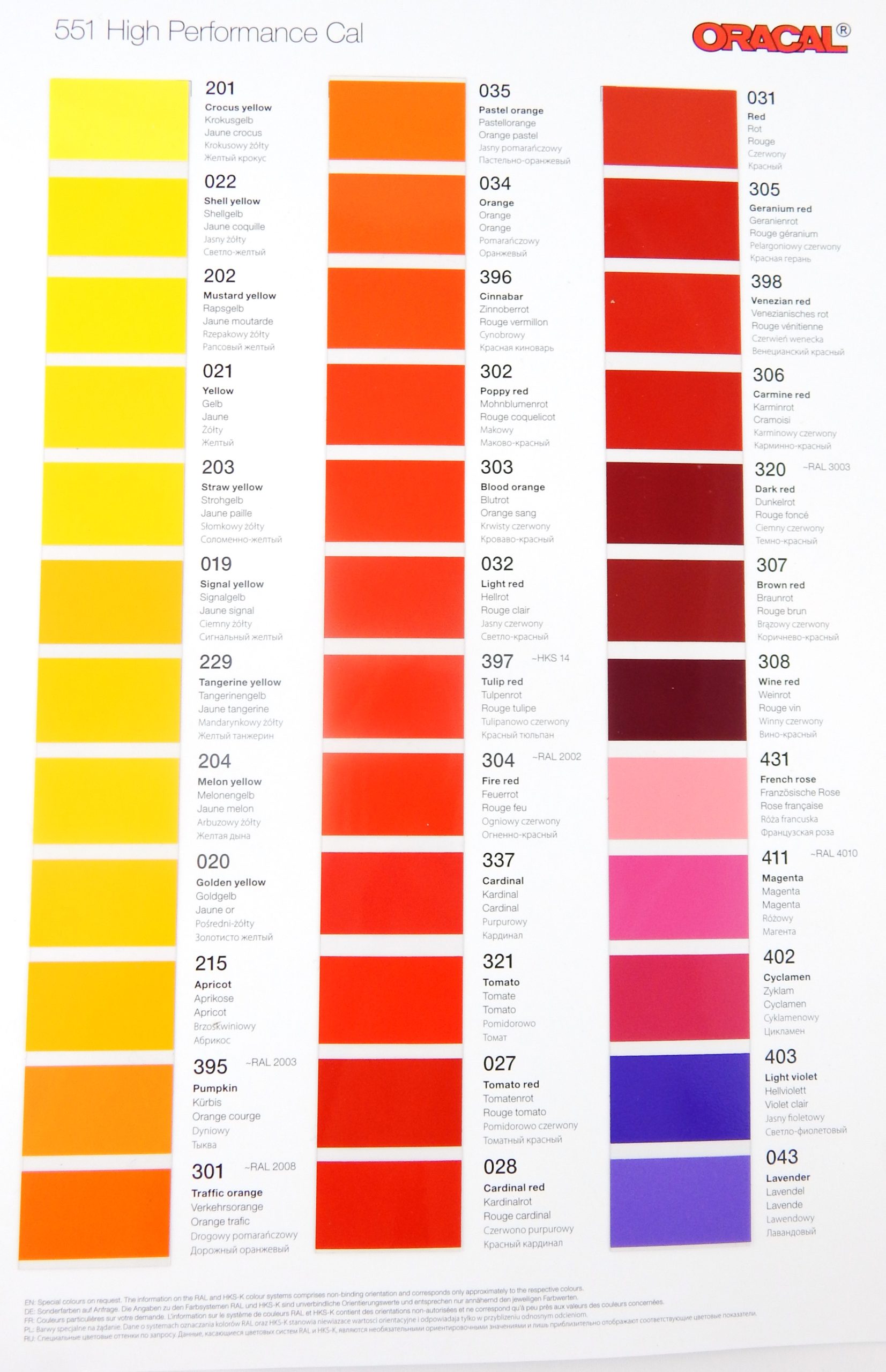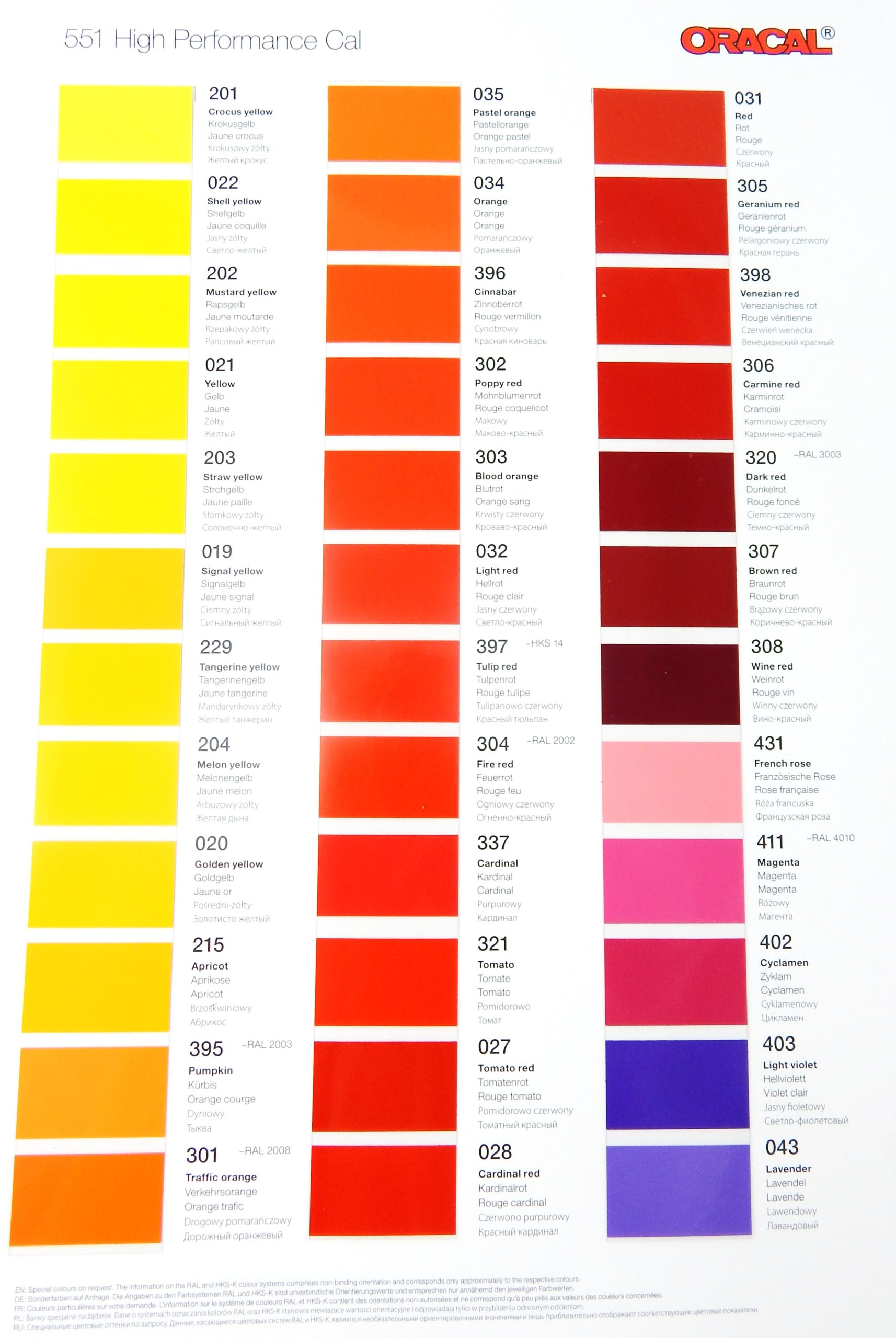 Wzornik folii Oracal 551. Format A4. Cena za 1 szt.